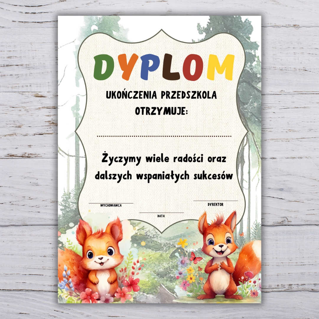 Dyplomy i wkładki – zakończenie przedszkola i roku z grupą Wiewiórki PDF