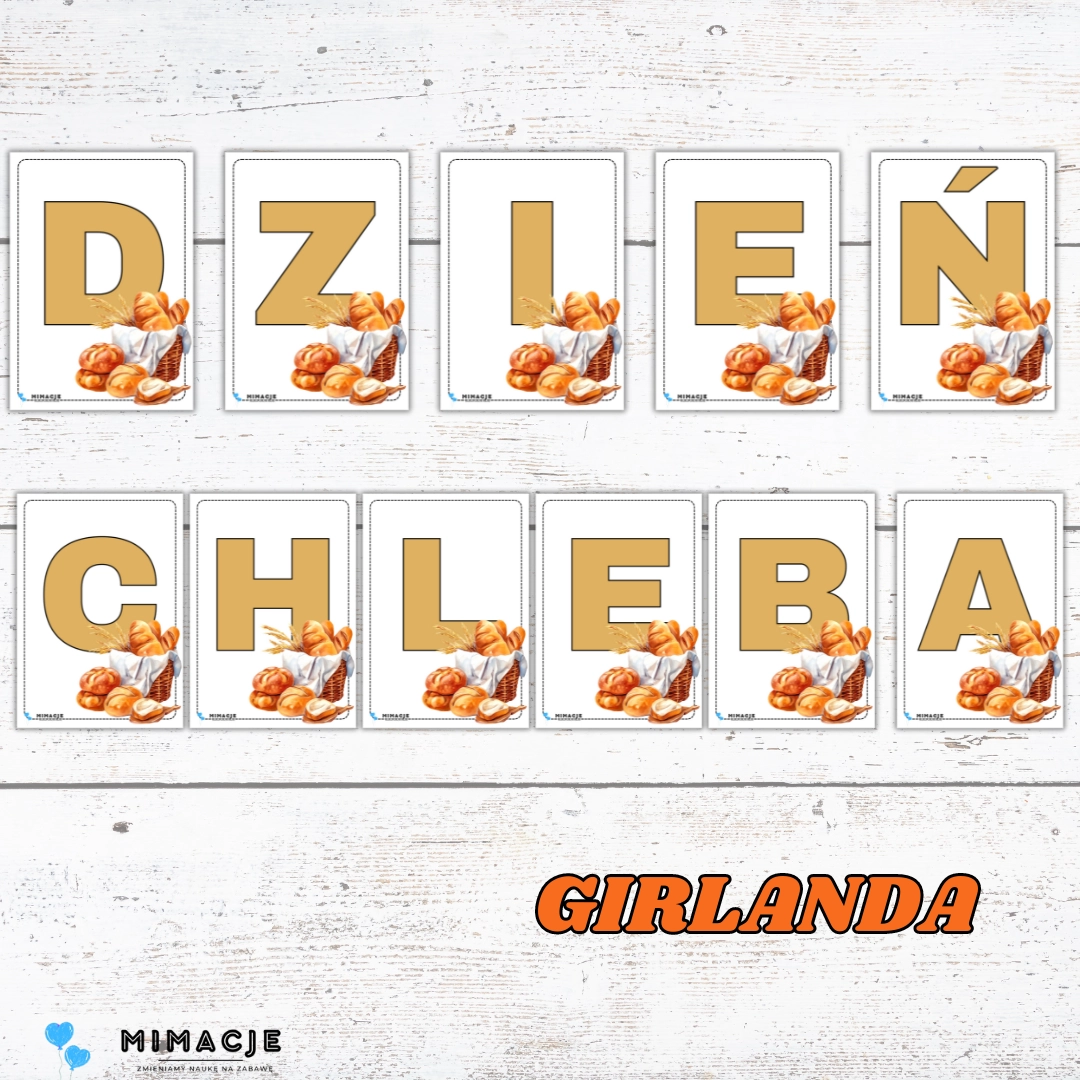 - Girlanda „Dzień Chleba” – każda litera na osobnej stronie A4.