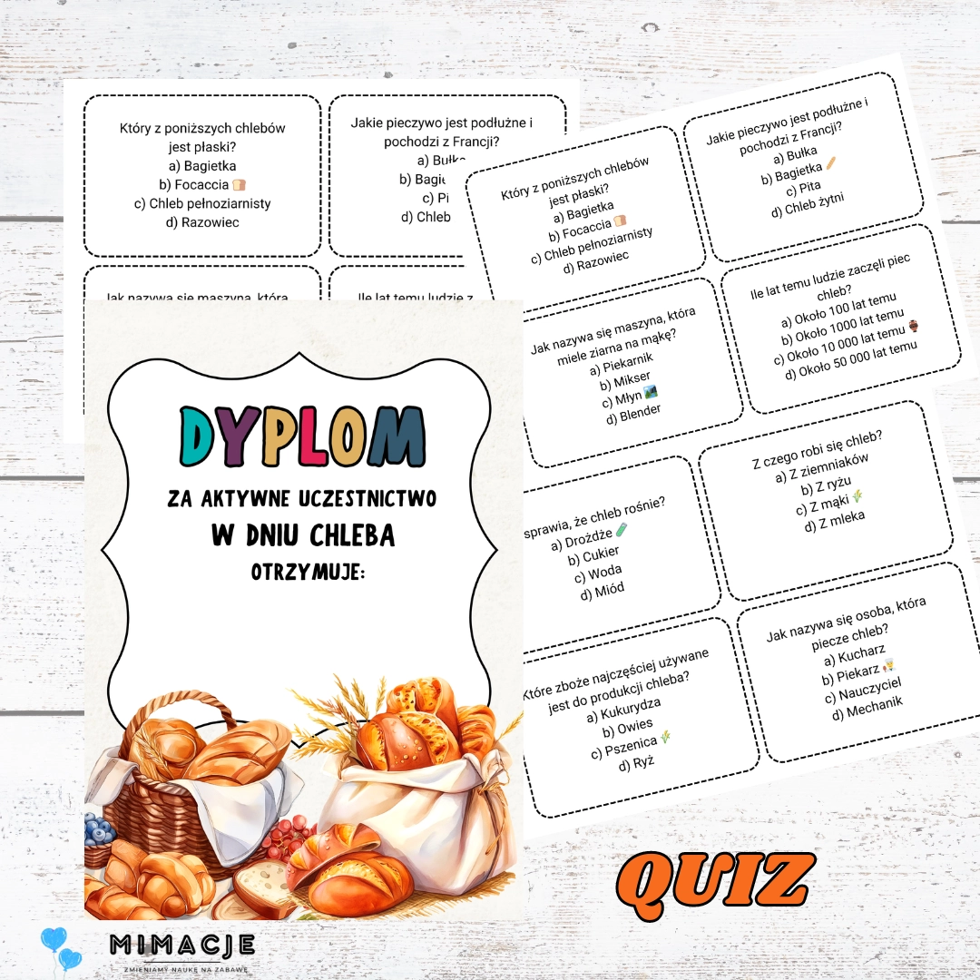 - Quiz o chlebie – 16 pytań z odpowiedziami w formie typu A, B, C, D.