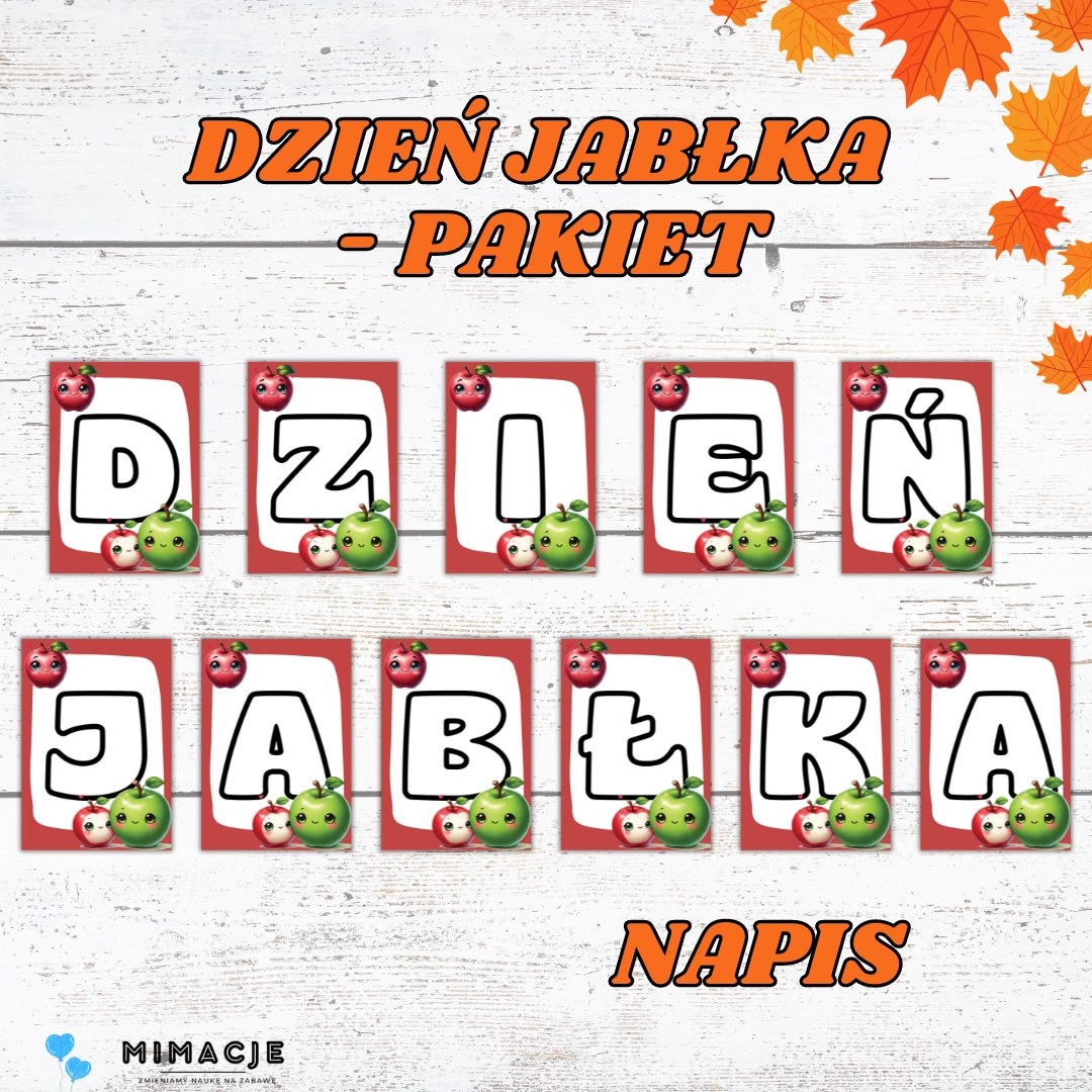 - Napis „Dzień Jabłka” – każda litera na osobnej stronie A4