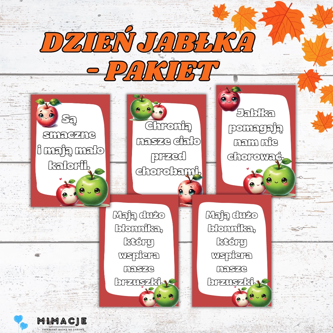 Świętuj Dzień Jabłka z wyjątkowym pakietem edukacyjnym, który wprowadzi Twoich uczniów w fascynujący świat jabłek! Pakiet zawiera różnorodne materiały do nauki i zabawy, które ułatwią przygotowanie tematycznych zajęć w przedszkolu, szkole lub w domu.