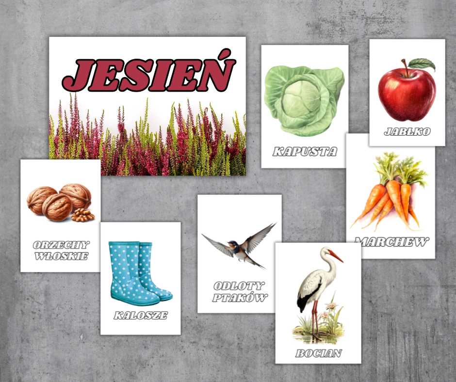 Karty Demonstracyjne – Jesień to wyjątkowy zestaw edukacyjny, który wprowadza dzieci w fascynujący świat jesiennej przyrody. Dzięki nim najmłodsi mogą poznać bogactwo natury, nauczyć się rozpoznawać rośliny, warzywa, owoce, a także ptaki odlatujące na zimę.