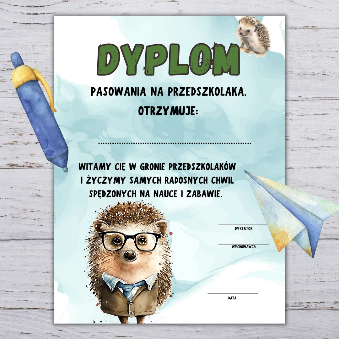 Dyplom z okazji pasowania na przedszkolaka.