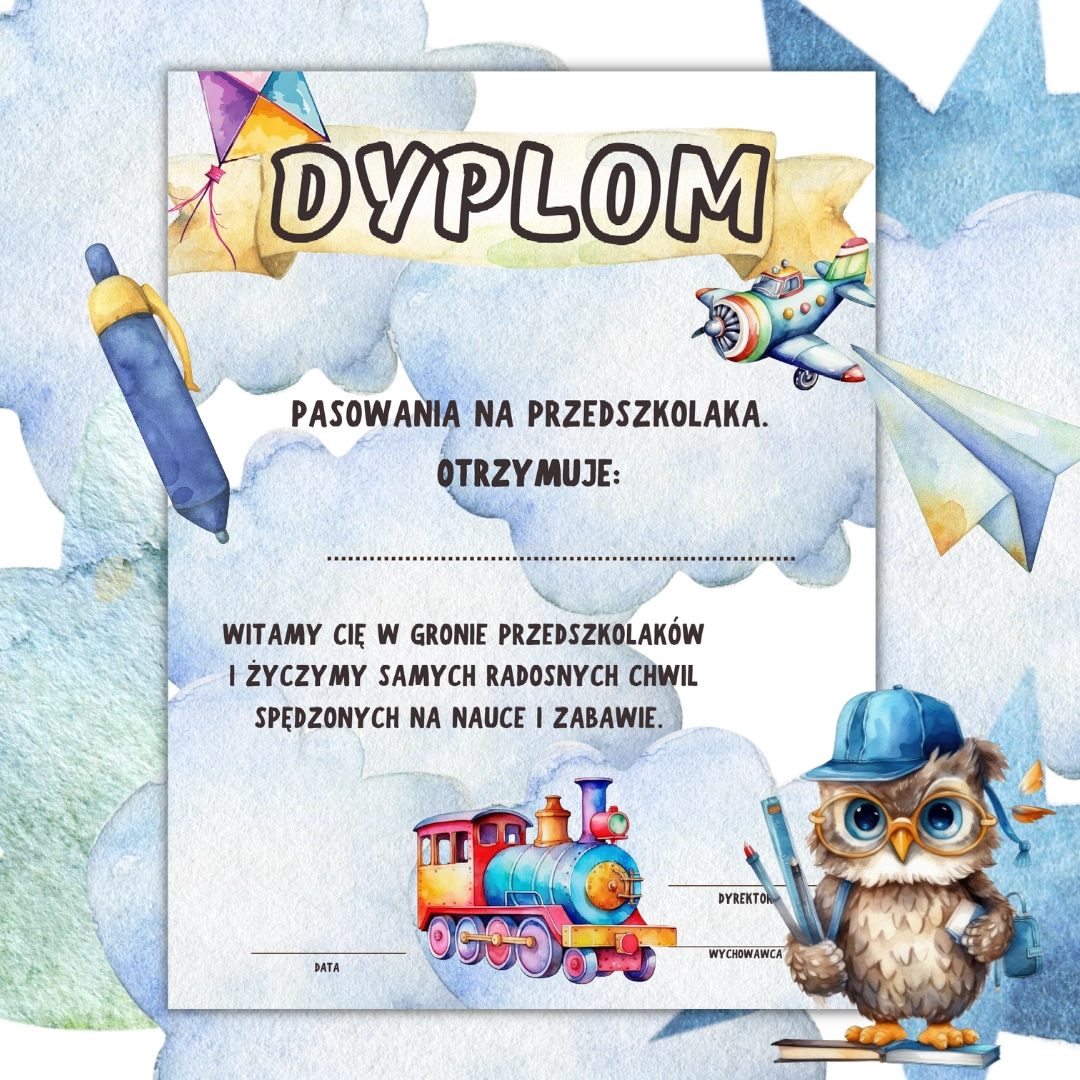 Dyplom z okazji pasowania na przedszkolaka.