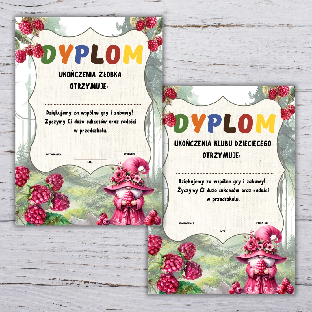 Producent Mimacje.plDyplomy i wkładki – zakończenie przedszkola i roku z grupą Maliny (Malinki) PDF