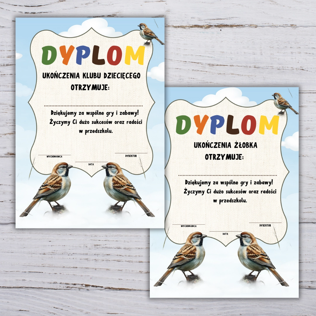 Dyplom ukończenia żłobka i klubu dziecięcego – Grupa Wróbelki PDF