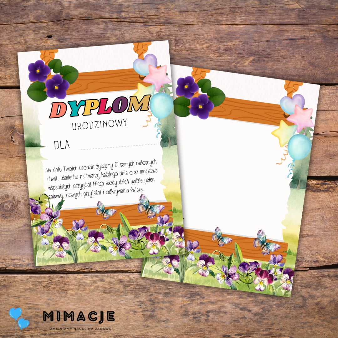 Dyplom urodzinowy do przedszkola – Grupa Fiołki PDF