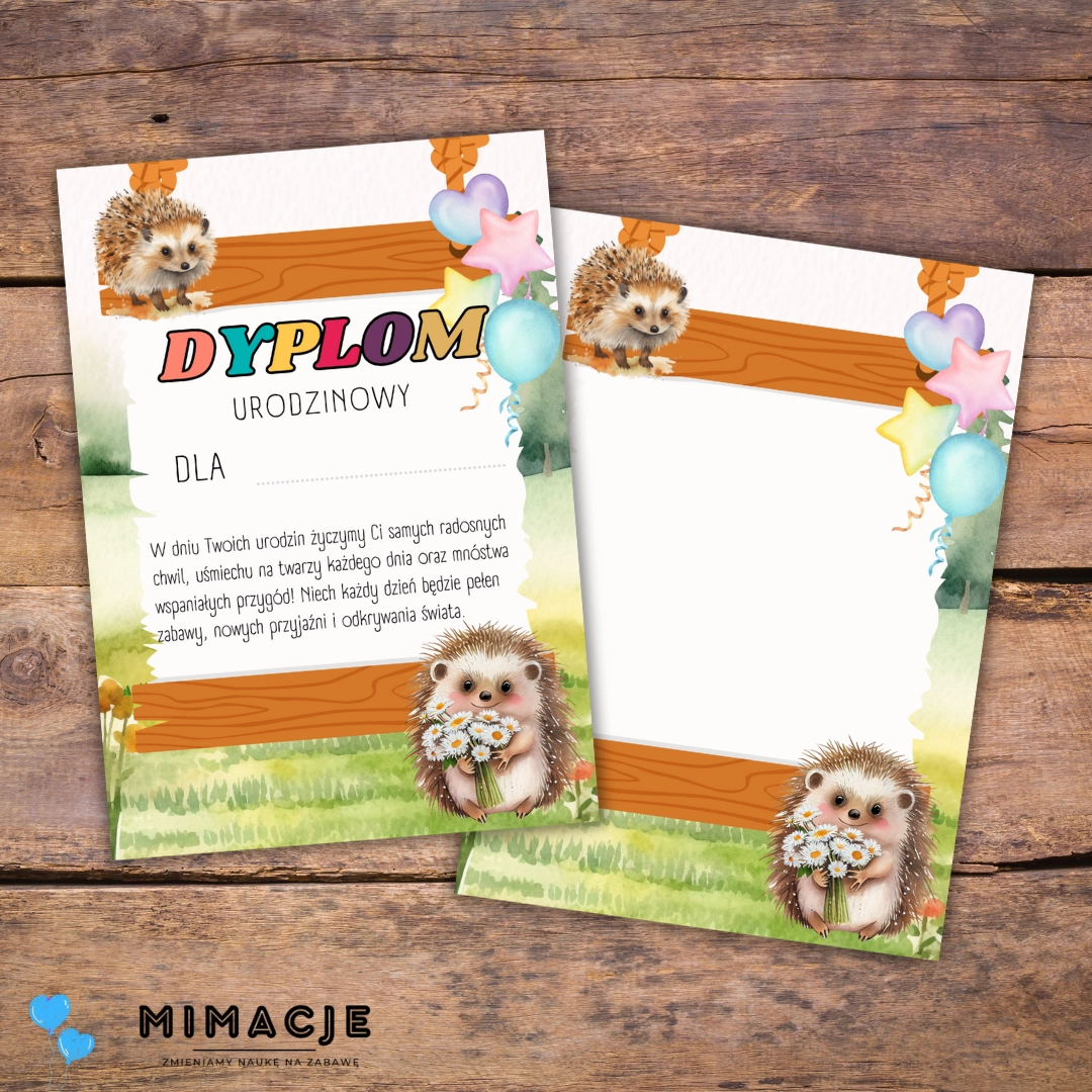 Dyplom urodzinowy do przedszkola – Grupa Jeże / Jeżyki PDF
