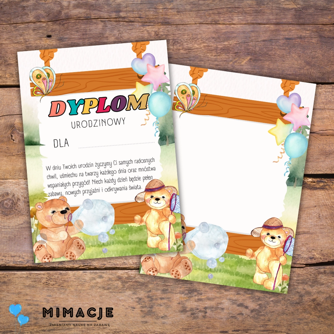 Dyplom urodzinowy do przedszkola – Grupa Misie PDF