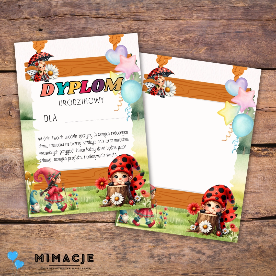 Wyjątkowy dyplom urodzinowy idealny na świętowanie urodzin w przedszkolu lub w domu! W zestawie znajduje się dyplom z gotowymi życzeniami oraz miejscem na wpisanie imienia solenizanta. Dodatkowo, dołączona jest pusta karta, która umożliwia samodzielne wypisanie życzeń. To doskonały sposób na uczczenie wyjątkowego dnia każdego dziecka, z motywami nawiązującymi do grup przedszkolnych.