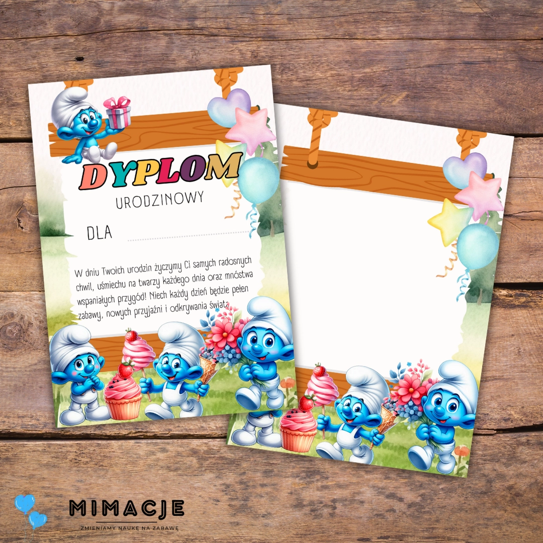 Dyplom urodzinowy do przedszkola – Grupa Smerfy PDF