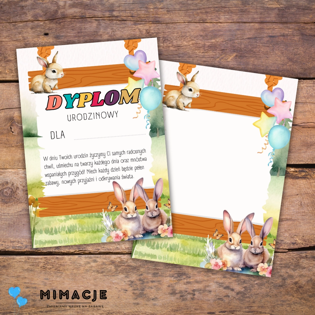 Dyplom urodzinowy do przedszkola – Grupa Zajączki / Króliczki PDF