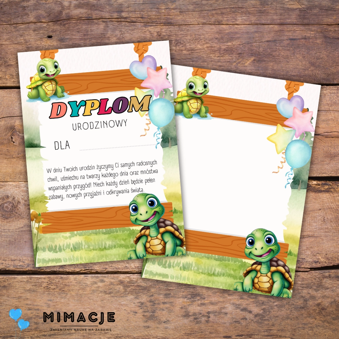 Dyplom urodzinowy do przedszkola – Grupa Żółwie PDF