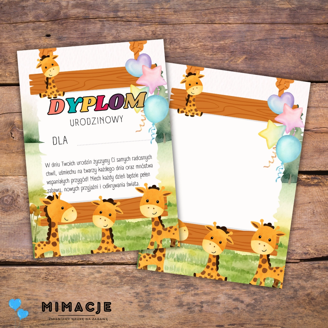 Dyplom urodzinowy do przedszkola – Grupa Żyrafki / Żyrafy PDF
