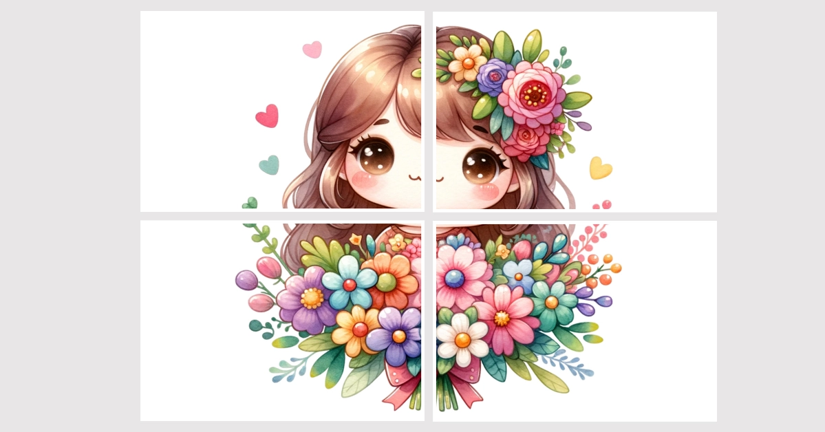 Zestaw zawiera napis 8 MARCA DZIEŃ KOBIET oraz dekoracje w rozmiarze 59 cm x 42 cm (do druku na czterech stronach a4), istnieje również możliwość wydruku na jednej stronie a4/