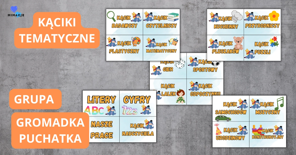 Etykiety do kącików przedszkolnych – Gromadka Puchatka PDF