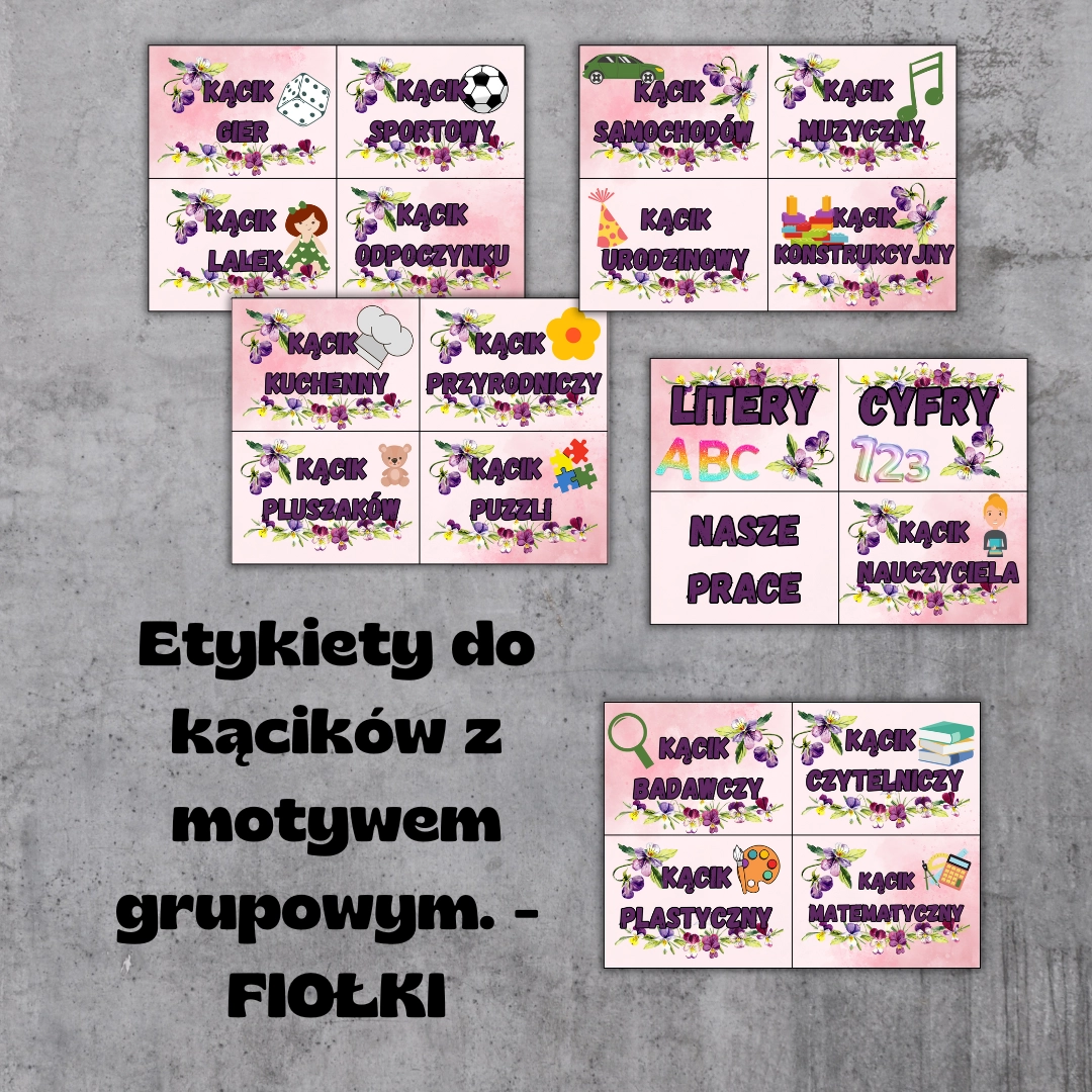 Etykiety do kącików przedszkolnych – Grupa Fiołki PDF