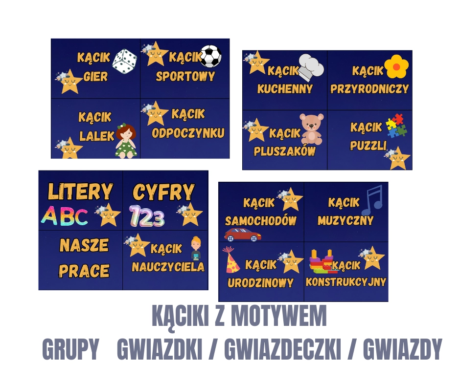 Etykiety do kącików przedszkolnych – Grupa Gwiazdki / Gwiazdeczki / Gwiazdy PDF