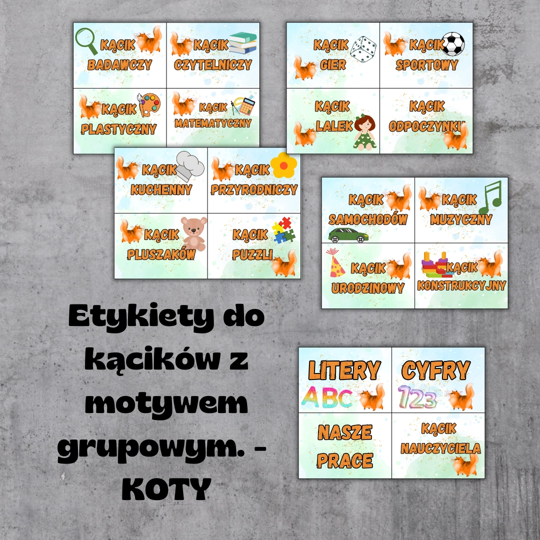 Etykiety do kącików przedszkolnych – Grupa Kotki / Koty PDF