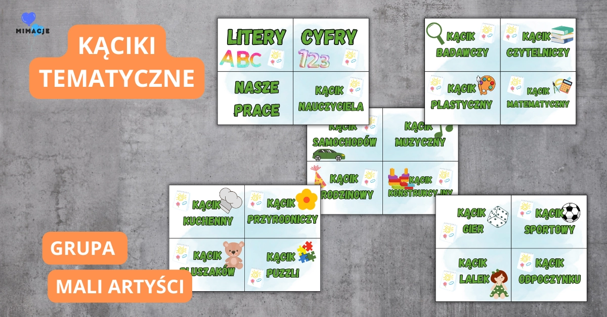 Etykiety do kącików przedszkolnych – Grupa Mali Artyści