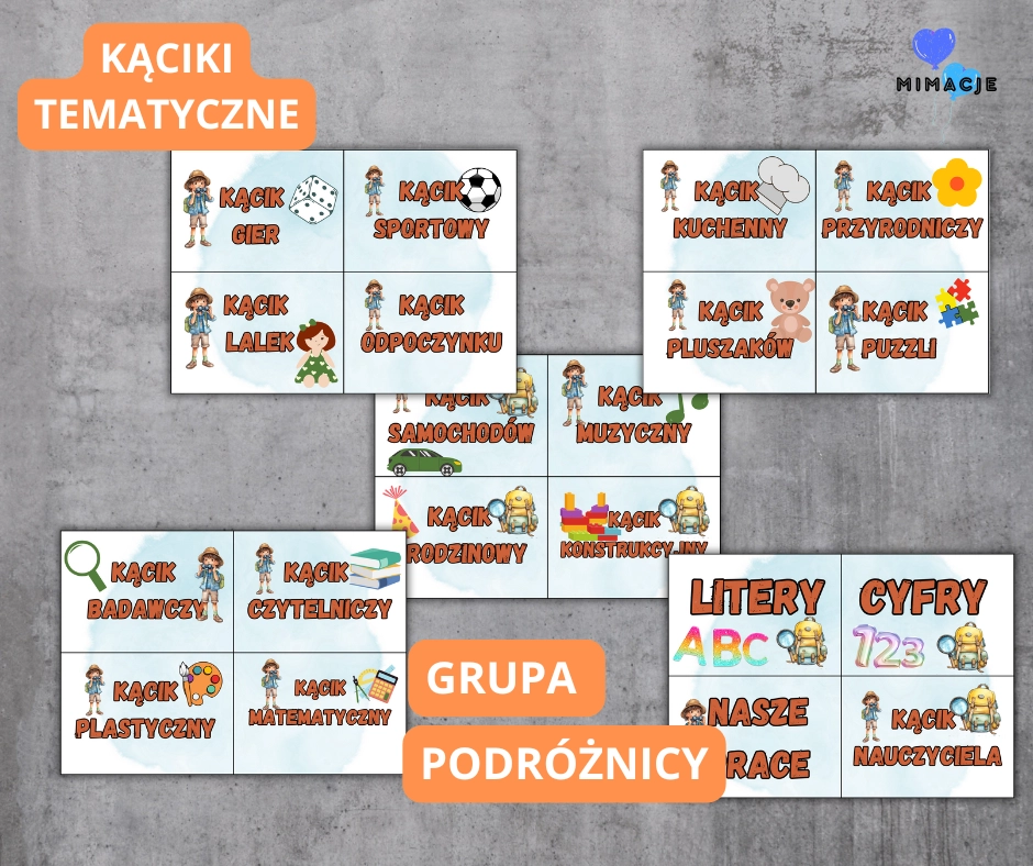 Etykiety do kącików przedszkolnych – Grupa Podróżnicy / Odkrywcy