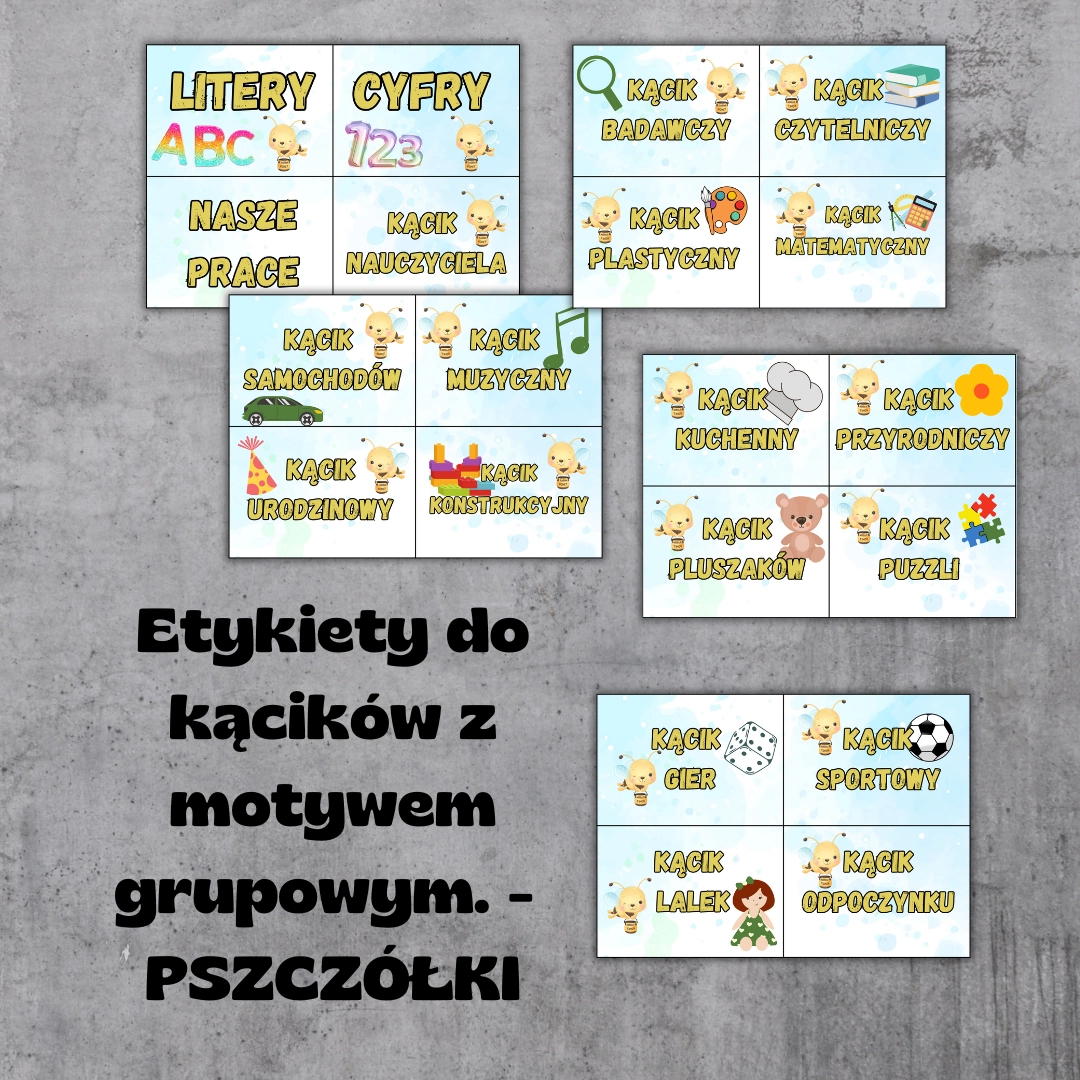 Etykiety do kącików przedszkolnych – Grupa Pszczółki / Pszczoły PDF