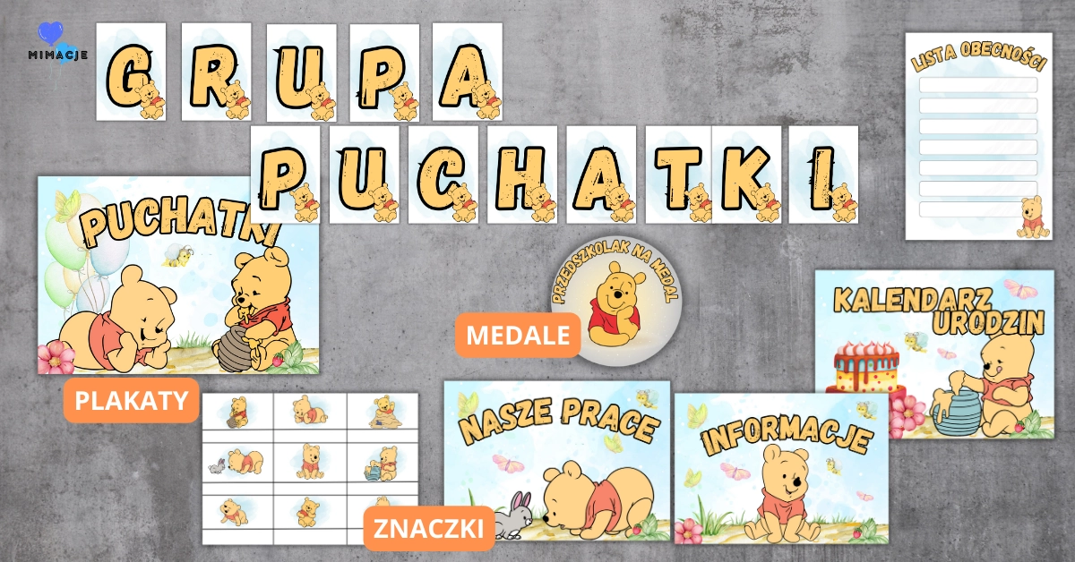 Etykiety do kącików przedszkolnych – Grupa Puchatki Kubusia Puchatka PDF