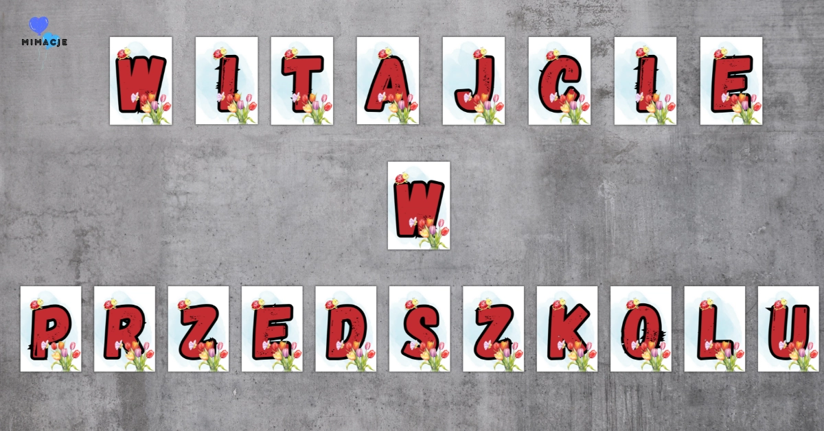 Zestaw zawiera napis WITAMY W PRZEDSZKOLU.