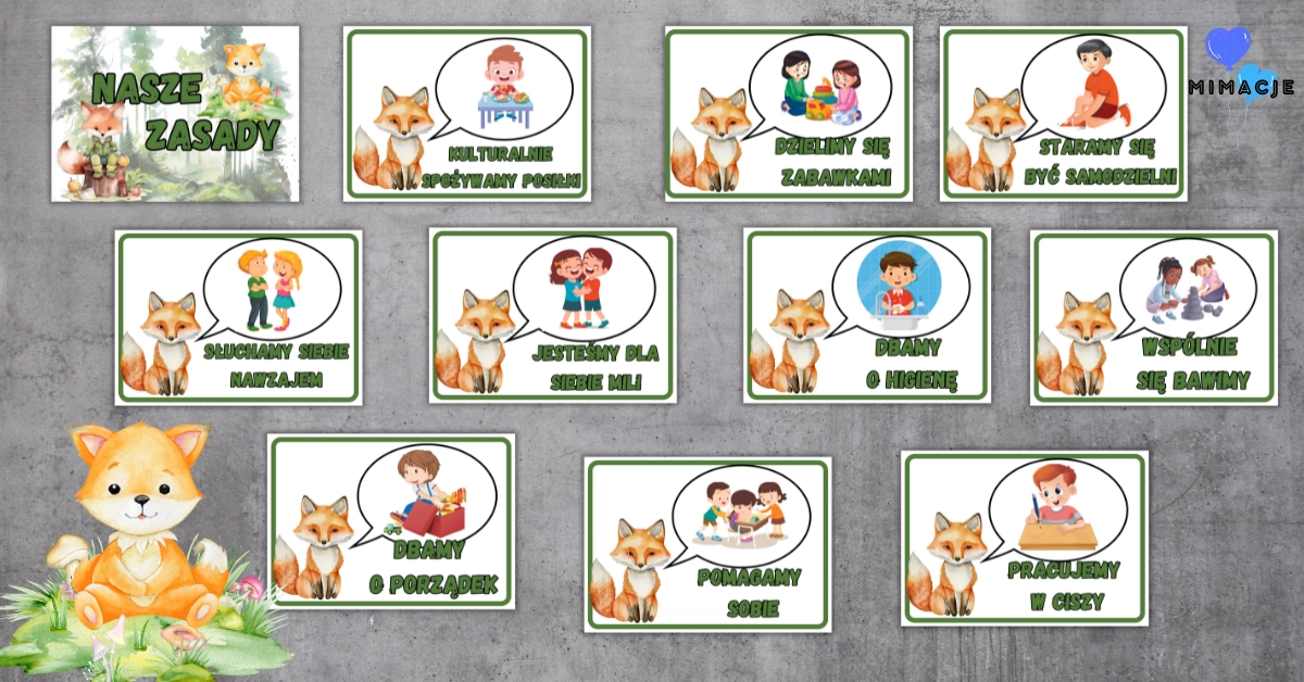 Producent Mimacje.plEtykiety do kącików przedszkolnych – Leśna Kraina, Leśne Zwierzęta, Muchomorki, Liski, Grzybki PDF