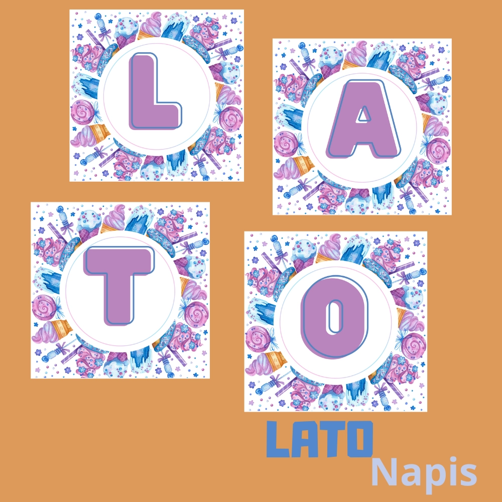 Napis „Lato” – dekoracja na gazetkę szkolną i przedszkolną PDF