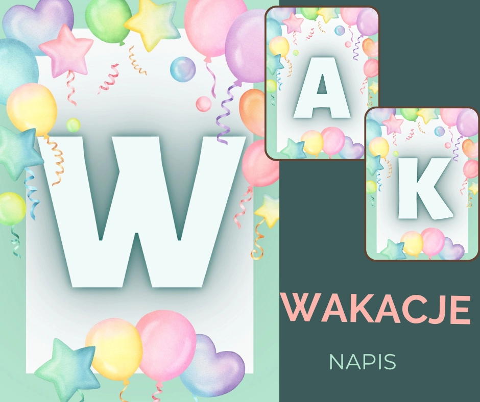Napis „Wakacje” – dekoracja letnia na gazetkę szkolną i przedszkolną PDF