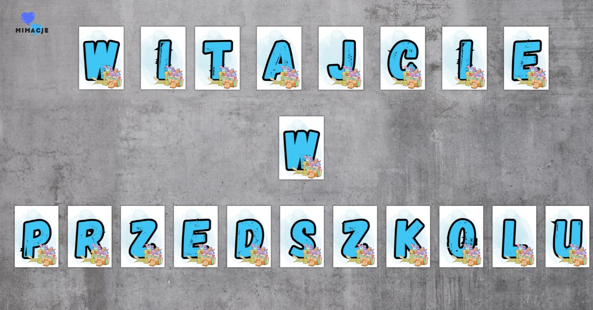 Zestaw zawiera napis WITAMY W PRZEDSZKOLU.