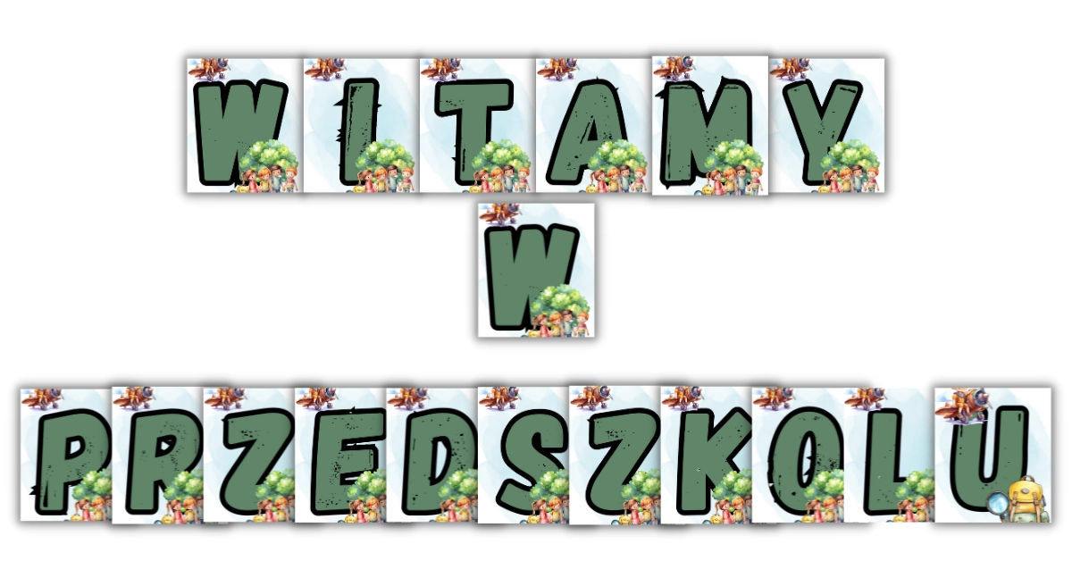 Zestaw zawiera napis WITAMY W PRZEDSZKOLU.