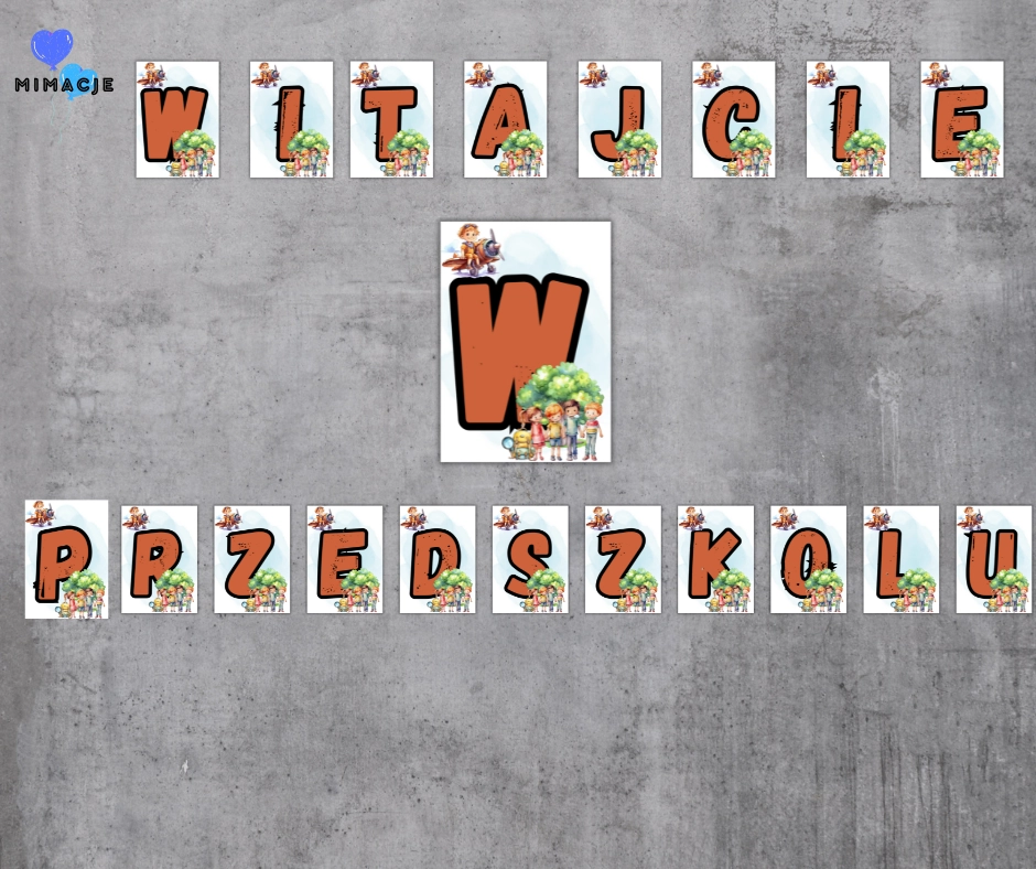 Zestaw zawiera napis WITAMY W PRZEDSZKOLU.