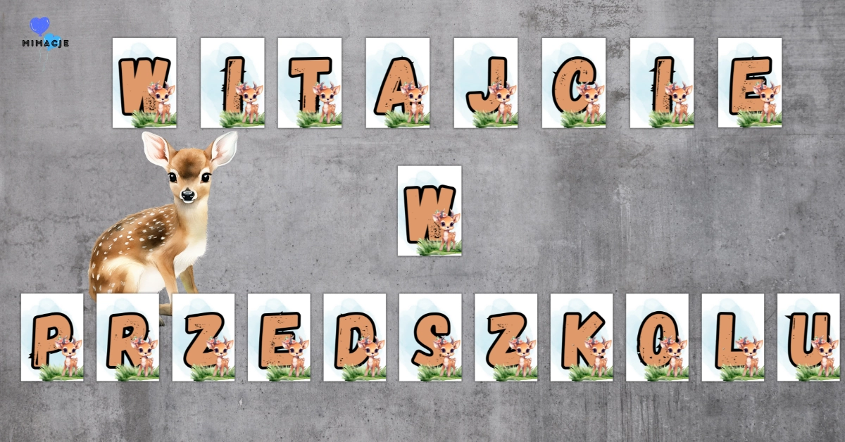 Zestaw zawiera napis WITAMY W PRZEDSZKOLU.