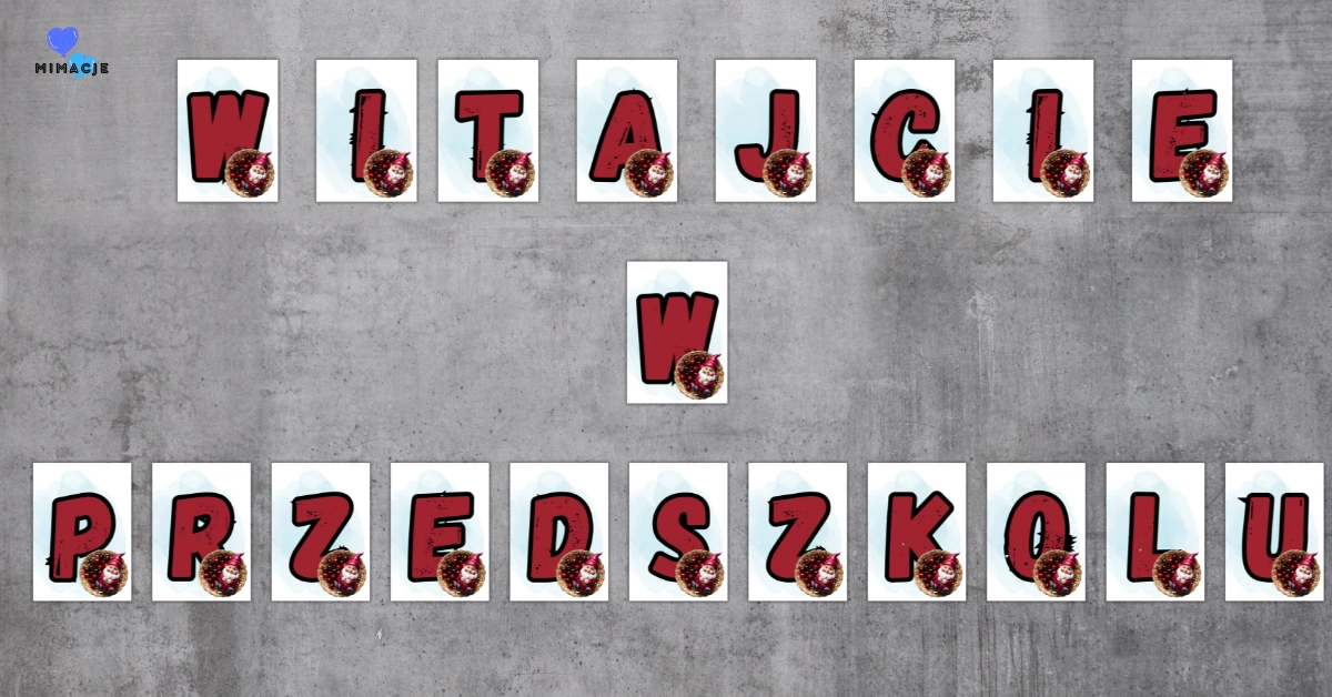 Zestaw zawiera napis WITAMY W PRZEDSZKOLU.