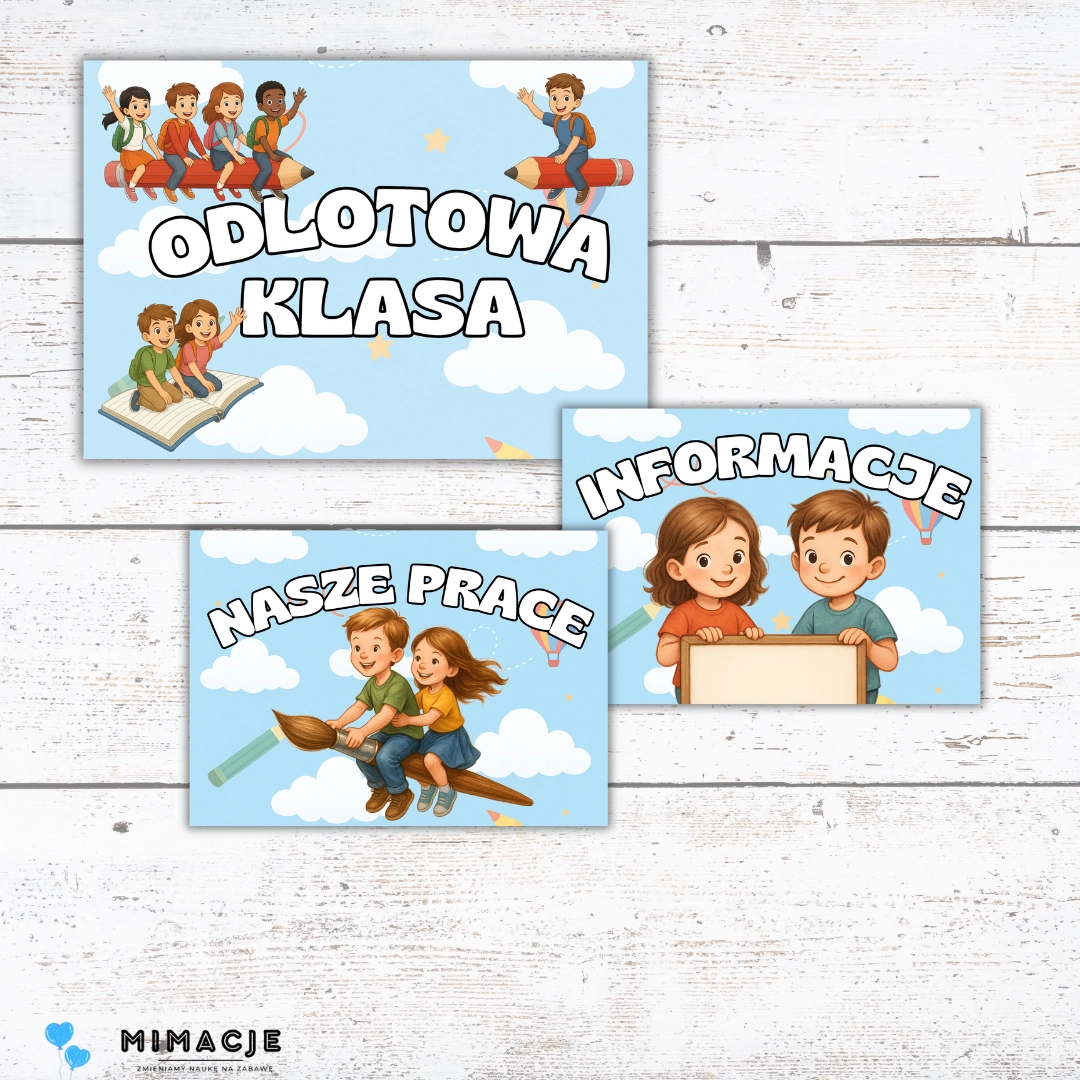 Dzięki temu zestawowi stworzysz spójną i radosną aranżację klasy, ułatwisz organizację codziennych obowiązków i podkreślisz wyjątkowość swojej grupy. Pakiet sprawdzi się zarówno w klasach 1–3 szkoły podstawowej, jak i w starszych klasach, które chcą rozpocząć rok szkolny w „odlotowym” stylu.