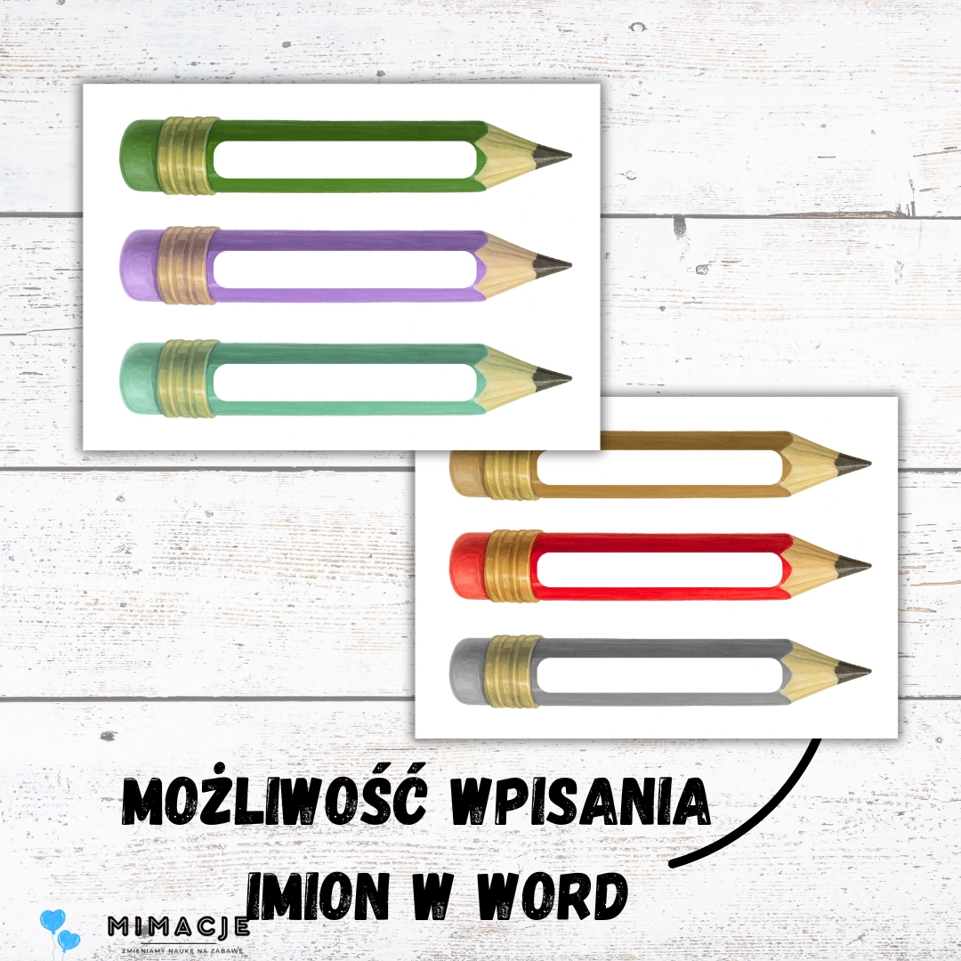 – Kolorowe kredki z miejscem na imiona – np. na szafki uczniów.