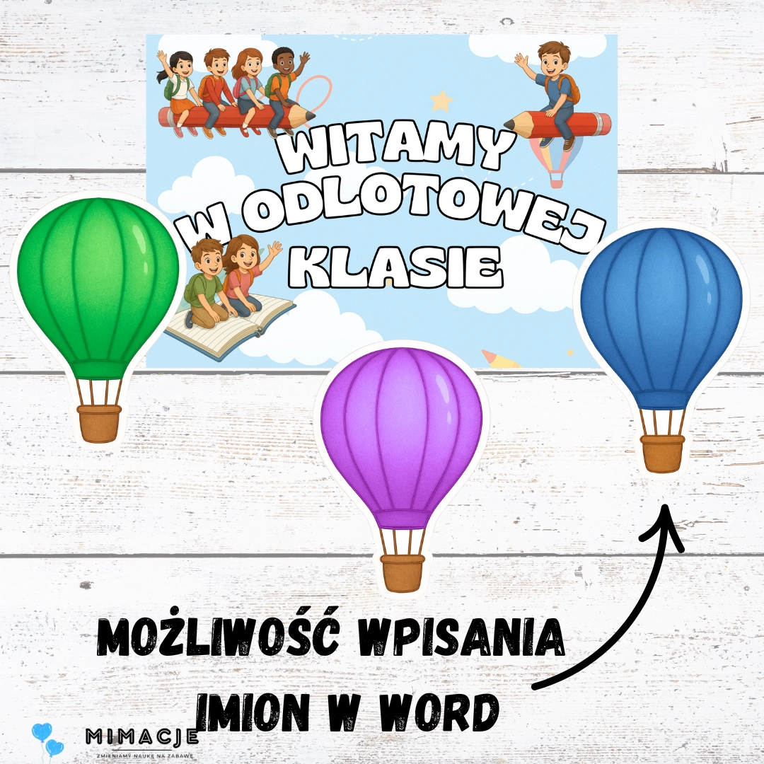 – Napis „Witajcie w Odlotowej Klasie” – idealny na drzwi lub tablicę powitalną.