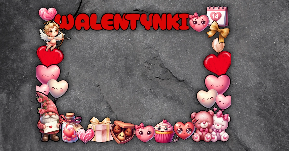 Zestaw zawiera 19 stron A4 przeznaczonych do stworzenia fotoramki „Walentynki”, w tym: